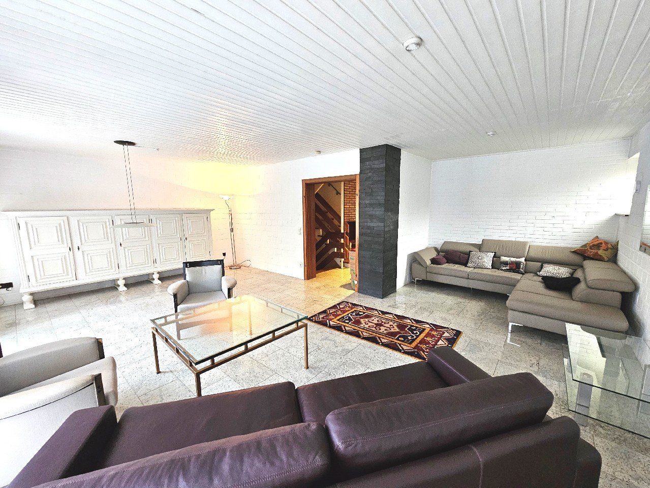 Die Einbauküche ist nicht nur funktional, sondern auch einladend und bietet genügend Platz für gesellige Kochabende mit Freunden und Familie. Ein modernes WC sorgt für zusätzlichen Komfort im Erdgeschoss, während der Keller mit einem Partyraum und einer Sauna für unvergessliche Abende und entspannende Stunden sorgt.