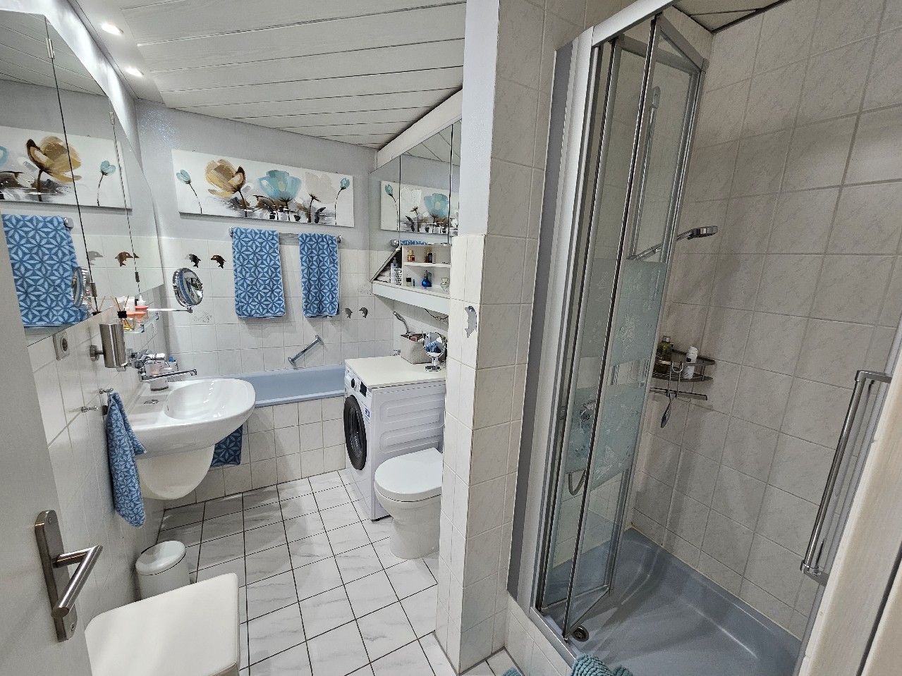 Im Zuge der Renovierung präsentiert sich die Einheit in einem modernen und ansprechenden Zustand. Das Badezimmer wurde im Jahr 2025 umfassend modernisiert und verfügt über eine Badewanne sowie eine separate Dusche. Diese Kombination bietet sowohl Komfort im Alltag als auch zusätzlichen Wohnwert. Der Waschmaschinenanschluss ist praktisch im Bad integriert.